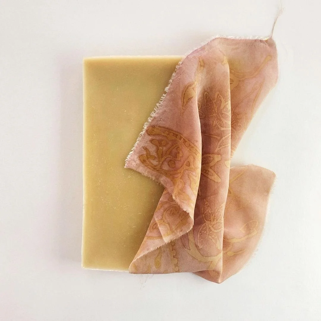 Each block is molded from a mixture of paraffin, soy, and beeswax which have been utilised previously. The mixture also contained various pigments, sodium carbonate, residue and water. Wax holds memory through the course of drawing with heat, re-heating, removing with heat and then solidifying into matter. Each process looks at a bodily relationship to how wax is handled in batik-making and how it could be collectivised and sustained into a multiple, single units without eliminating it from the entire production process. Second slide: Documentation of removing wax from the silk fabric by adding in boiling water and sodium carbonate for an easier slip.